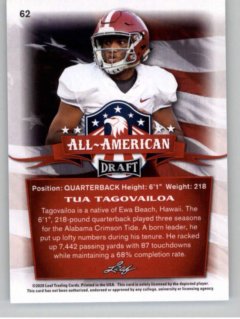 Amazon Com 2020 Leaf Draft Football 62 Tua Tagovailoa Pre Rookie Trading Card Alabama Crimson Tide Collectibles Fine Art
